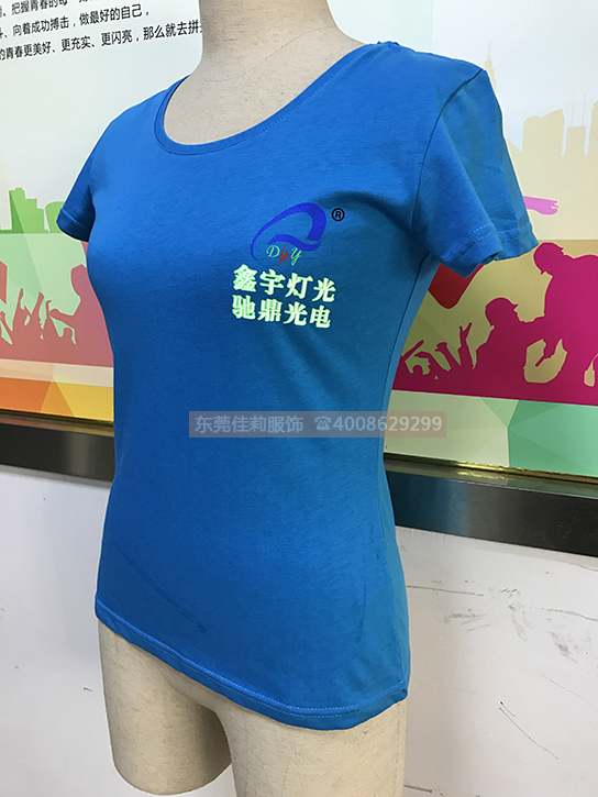 鑫宇燈光通過百度找到佳莉,定做了一批圓領活動衫,因為四月初有領導檢查,貨期趕得非常急,四天時間我們就把幾百件貨交齊了。邱總看中的是一款純棉圓領T,面料和做工都非常好,而且還分男女尺碼,女生穿起來也非常好看哦!