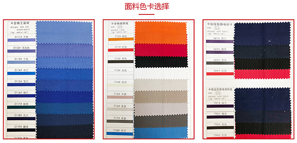 許多需要定制工作服的朋友不用擔(dān)心啦!佳莉提供多款色卡選擇,滿足特殊定制要求,不管您是對(duì)顏色很挑剔,還是對(duì)面料很挑剔,都有許多的選擇了。佳莉有高端,中端的定制服務(wù),只要您有需求,都可以寄色卡挑選面料的!