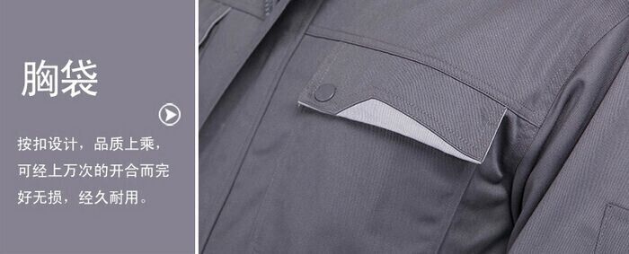 JL-QD262工作服是佳莉的經典款式之一,胸前采用銀灰色撞色拼接,走線細致,實用性強。自上市以來,好評不斷。左中腰間口袋均采用雙層設計,傾斜線條,穩重大氣,是東莞企業的選擇。