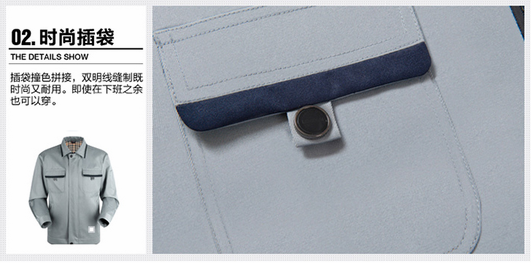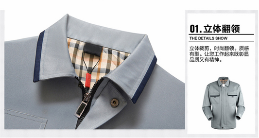 JL-QD204東莞廠服以淺灰色為主調,采用立體翻領和時尚插袋來襯托時裝者的時尚動感。采用夾克式的下擺,簡約平整的設計使您更加干練