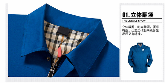 JL-QD217東莞廠服以寶藍(lán)色純色為主色,領(lǐng)口采用立體式翻領(lǐng),外側(cè)插兜線條感十足,甄選高品質(zhì)面料,讓您穿著舒服,時(shí)尚