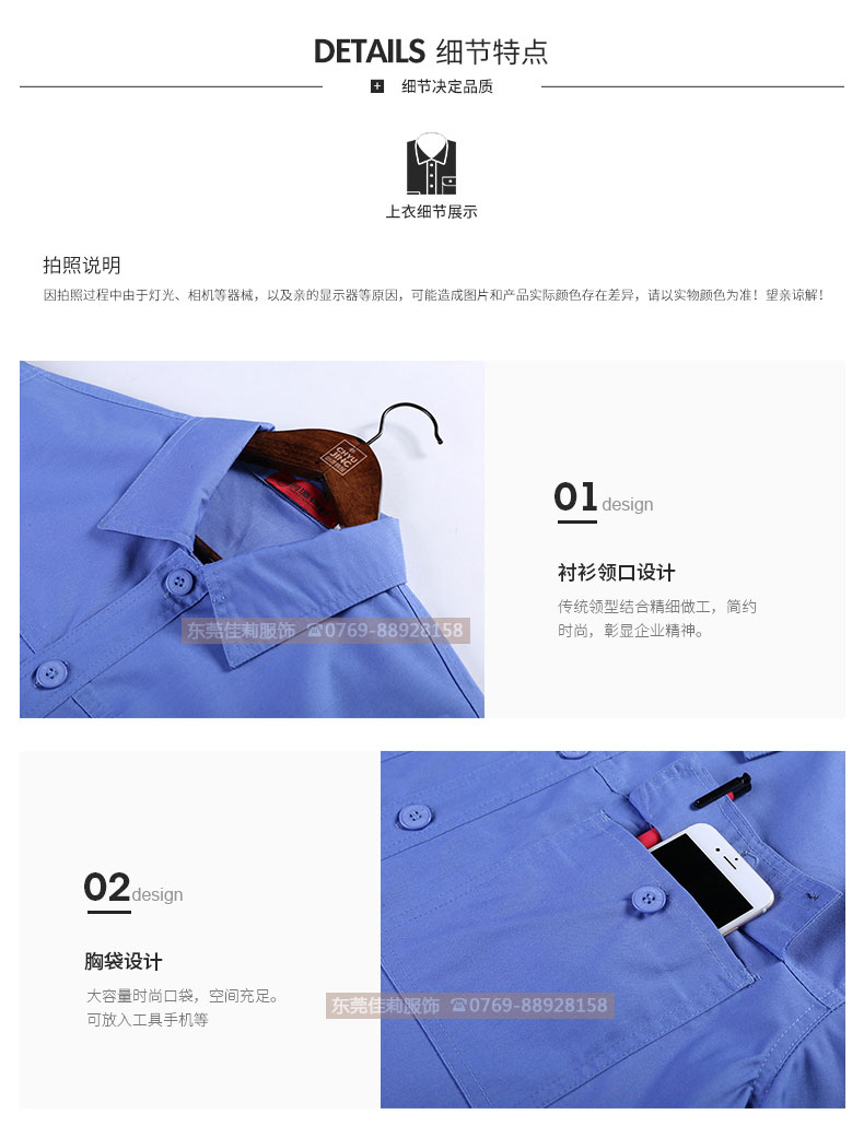 • 夏季工作服套裝 純藍工作服定做 JL-XJ180