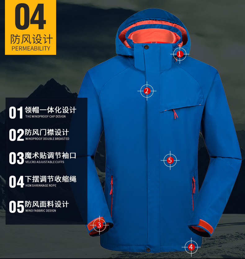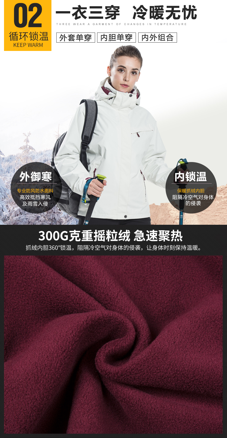 沖鋒衣定制三合一戶外 秋冬防水沖鋒衣套裝JL-566