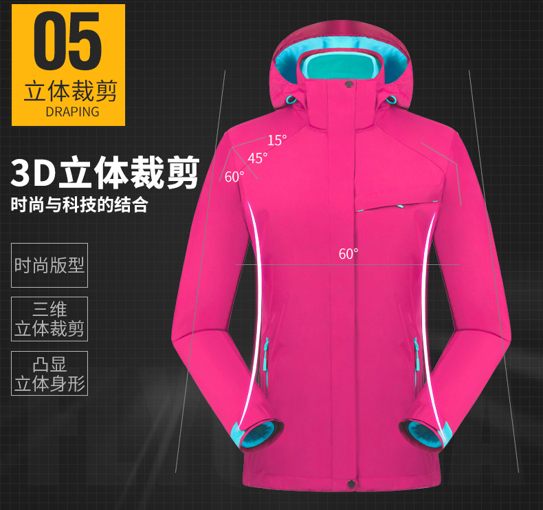 防風防雨,鎖溫保暖,腋下透氣網洞,3合1沖鋒衣,內膽可拆卸
